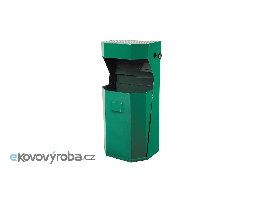 Vyrobeno z kvalitního ocelového plechu o síle 1 mm. Moderní design – hodí se do veřejných prostor. V horní části je koš vybaven popelníkem. Nádoba na odpad je vyjímatelná.