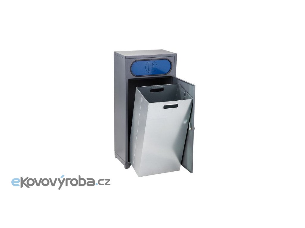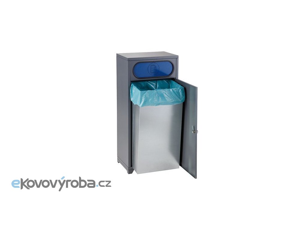 Plechový odpadkový koš na tříděný odpad. Vyrobeno z kvalitního pozinkovaného plechu o tloušťce 1 mm. Koš s velice robustní a tudíž odolnou konstrukcí. Povrchová úprava vyhotovena práškovou barvou. Vybaveno dvěma vhozy na protilehlých stranách s klapkou pro úniku zápachu. Vybaveno vnitřní pozinkovanou vložkou o objemu 60 l. Vybaveno nožičkami s možností kotvení. Vybaveno otočným uzávěrem s možností uzamčení. Dodáváno ve čtyřech barevných kombinacích.