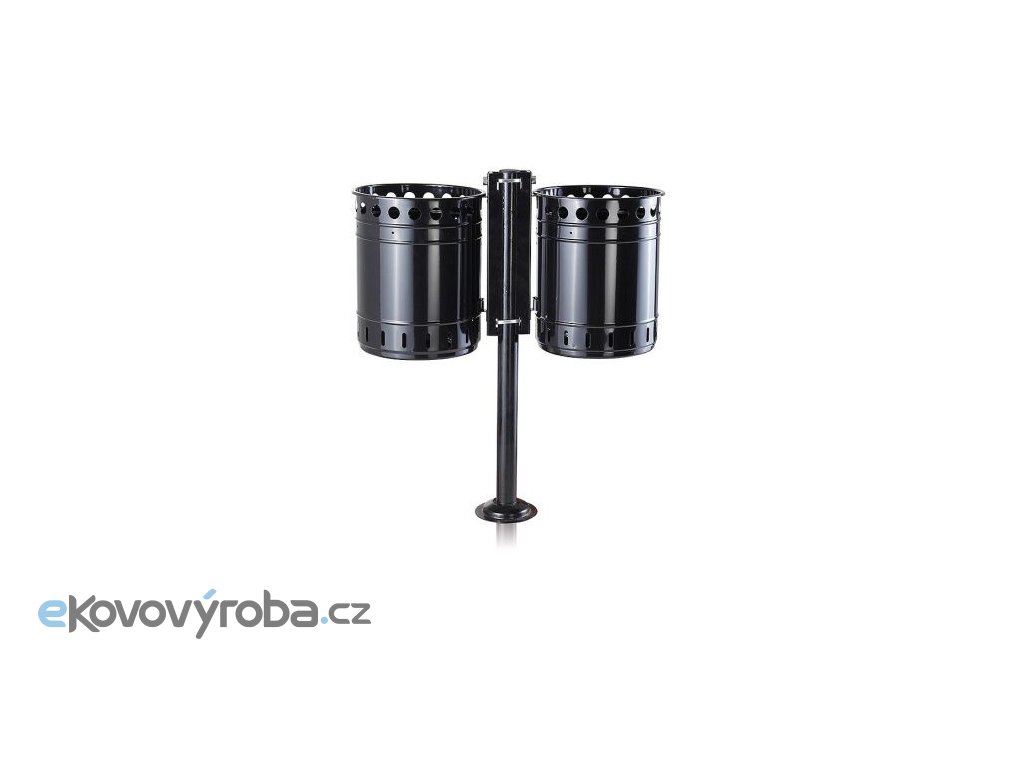 Venkovní odpadkový dvojkoš se zámkem. Vyrobeno z kvalitní pozinkované oceli (všechny části). Odpadkové koše mají dlouhodobě ověřenou funkčnost a design. Povrchová úprava provedena práškovou barvou – vysoká odolnost vůči korozi. Koše jsou uzamykatelné pomocí univerzálního trojhranného zámku. Stojina koše je uzpůsobena k zabudování do komunikace. Stojina je opatřena práškovou barvou. Stojina je součástí koše a je opatřena práškovou barvou.