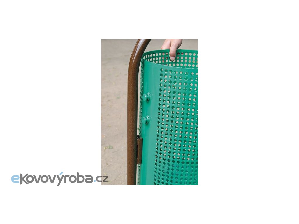 Venkovní odpadkový závěsný koš o objemu 50 l. Vyrobeno z ocelového plechu. Moderní koš s ochrannou konstrukcí. Nádoba je děrována. Snadné vysazení nádoby směrem nahoru. Konstrukce je připravena k montáži na podložku pomocí šroubů. Povrchová úprava provedena nátěrem práškovou barvou.