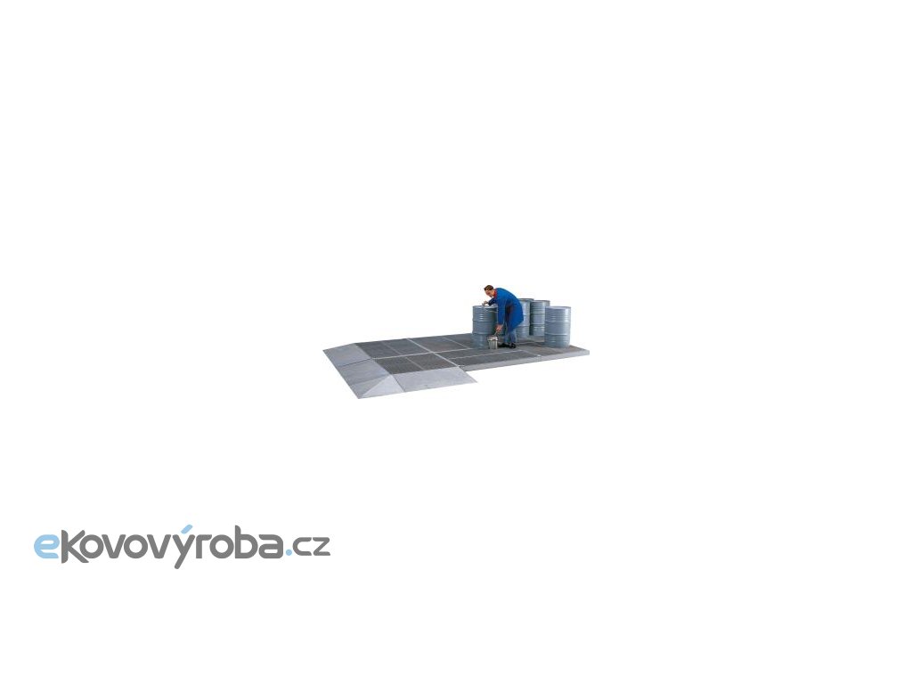 Kovová záchytná podlaha pro ukládání a manipulaci s látkami, které mohou znečistit vodní zdroje nebo jsou vznětlivé. Stavebnice umožňuje instalovat libovolně velikou a tvarovanou plochu jako plochu pro skladování, manipulaci a plnící plochu nebezpečných látek. Nosnost podlahy je 5000 kg/m2, bodové zatížení jednoho kola 450 kg. Záchytný objem je 46 litrů. Rozměr 130x130 cm, výška 5,5 cm. Ocelový rošt je vyjímatelný.