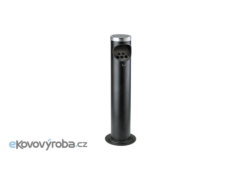 Ocelový stojanový popelník s vložkou 2,3 l. Vyrobeno z oceli. Vrchní část a děrované mřížka jsou vyrobeny z nerezové oceli. Popelník je povrchově upraven práškovou barvou (komaxit). Vybaveno zinkovanou vložkou. Opatřeno kulatým vhozem. Zadní část popelníku je opatřena uzamykatelným prostorem pro nádobku na nedopalky. Vhodné jak do vnitřních, tak i venkovních prostor. Popelník je možné přikotvit k podložce pomocí šroubů.