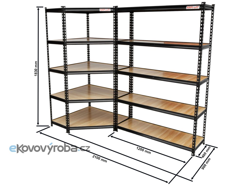 Rohový regálový systém STYLE - 2100 x 900 x 1830 mm, 2 díly