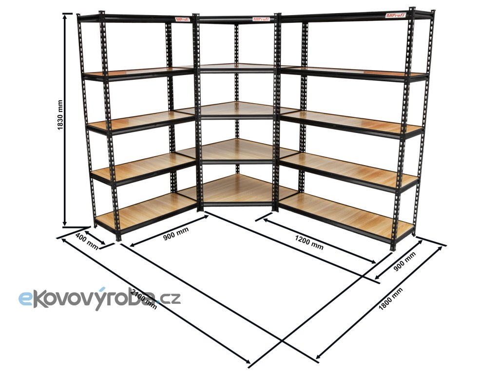 Rohový regálový systém STYLE - 2100 x 1800 x 1830 mm, 3 díly