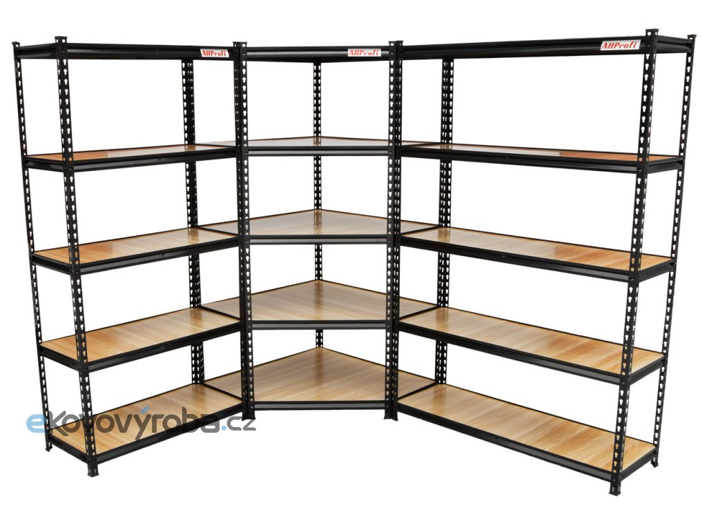 Tento regálový systém je konstruován z kvalitní oceli pro maximální odolnost a stabilitu. Konstrukce z 0,8 mm oceli má oproti běžným regálům z 0,6 mm oceli vysokou nosnost až 265 kg na polici. Police jsou výškově nastavitelné a vyrobeny z pevných MDF desek s hladkým povrchem. Součástí každého regálu je 5 polic.