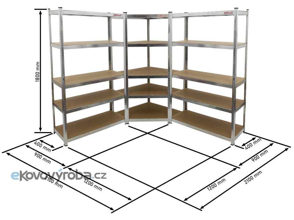 Rohový regálový systém STANDARD - 2100 x 2100 x 1800 mm, 3 díly