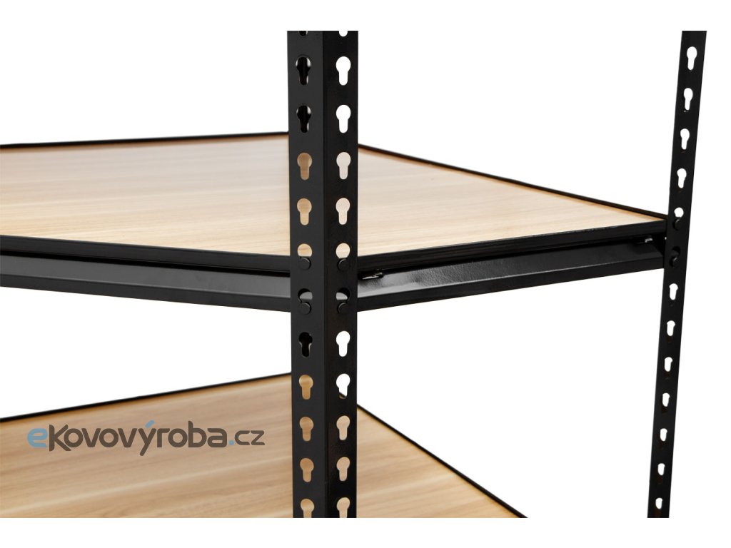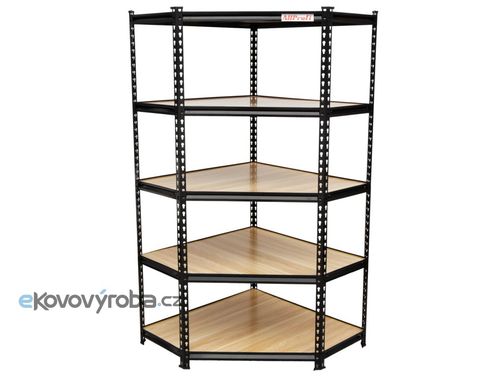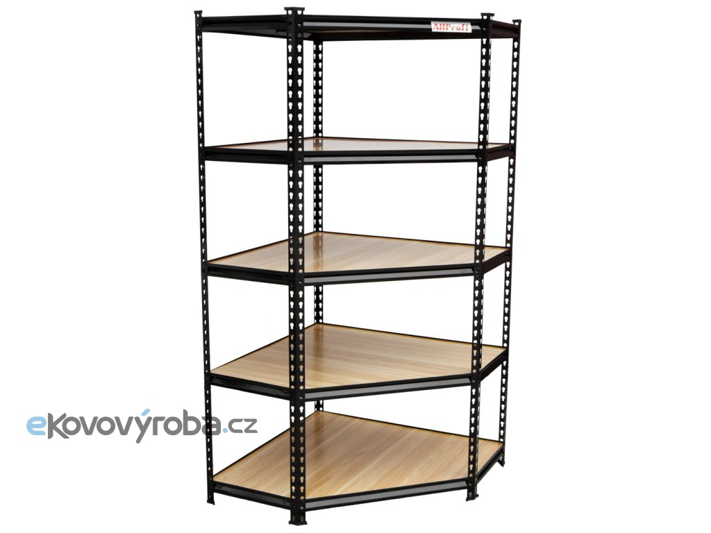 Rohový policový regál je konstruován z kvalitní oceli pro maximální odolnost a stabilitu. Konstrukce z 0,8 mm oceli má oproti běžným regálům z 0,6 mm oceli vysokou nosnost až 265 kg na polici. Police jsou výškově nastavitelné a vyrobeny z pevných MDF desek s hladkým povrchem. Součástí regálu je 5 polic.