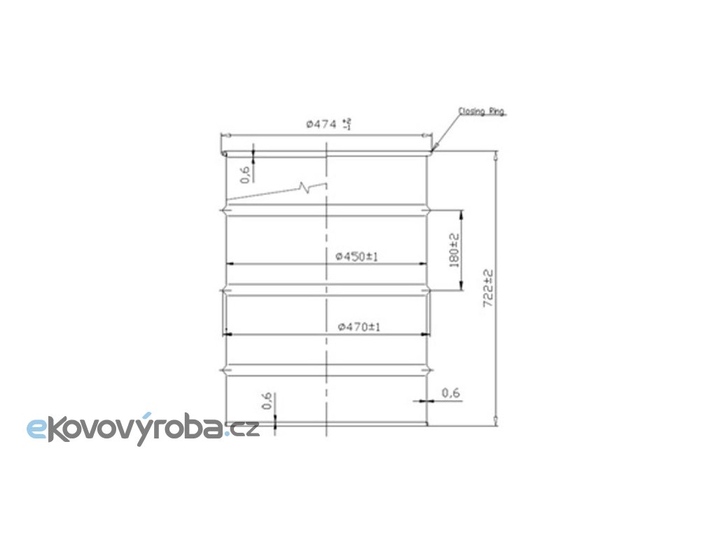 Ocelový sud o objemu 115 l s odnímacím víkem. Vyrobeno z ocelového plechu a zpevněno lisovanými výztuhami. Vyráběno z ocelového plechu dle EN 10 130 s vlastnostmi odpovídající EN 10 131. Dno je s pláštěm spojeno vícenásobným bezpečnostním zadrápkováním s těsnící hmotou. Víko je zajištěno svěrným kruhem s pákovým uzávěrem – lze zajistit pojistkou. Odolný proti působení vody, vlhka a povětrnostních vlivů – vhodné k venkovnímu skladování. V souladu s předpisy UN obalových skupin I/X, II/Y a III/Z. Uskladněné látky nesmí přesáhnout hmotnost 157 kg.