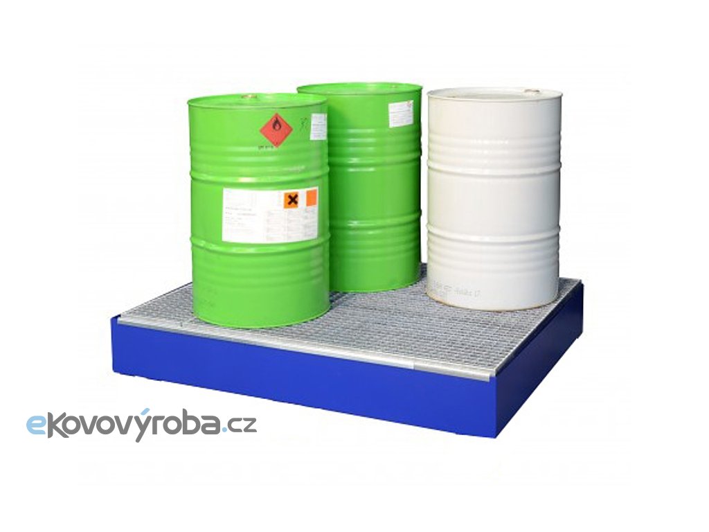 Ocelová žárově zinkovaná záchytná vana bez nožek, s ocelovým roštem o velikosti 120x120x16 cm (typ SW4). Záchytný objem vany je 205 litrů, nosnost 1600 kg.