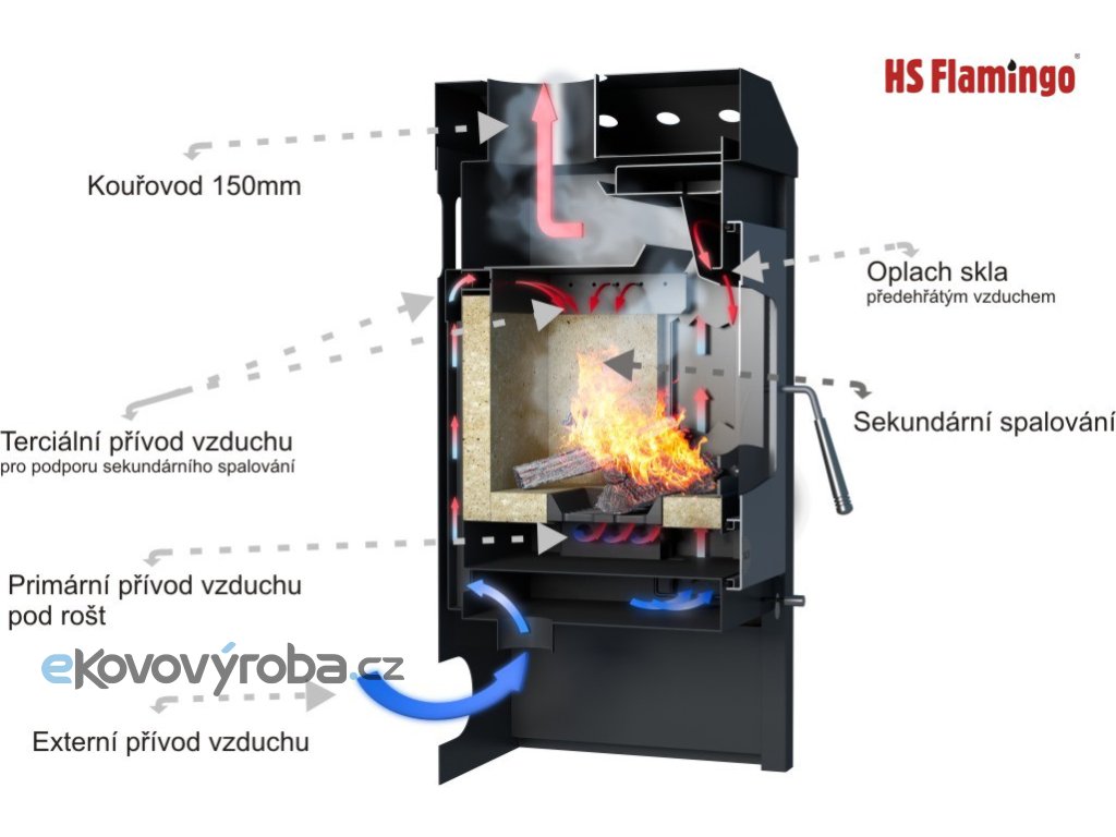 Krbová kamna HS Flamingo jsou ryze českým výrobkem. Je zde kladen velký důraz na použité materiály a především jejich sílu. Krbová kamna splňují nejpřísnější evropské normy, díky nimž jsou velmi žádaná v zahraničí. Jejich komora je vyrobená z 5mm ocelového plechu a pro dokonalejší spalování je vysázena pravým šamotem. Sekundární spalování, krásně čisté sklo a externí přívod vzduchu je u kamen HS Flamingo samozřejmostí.