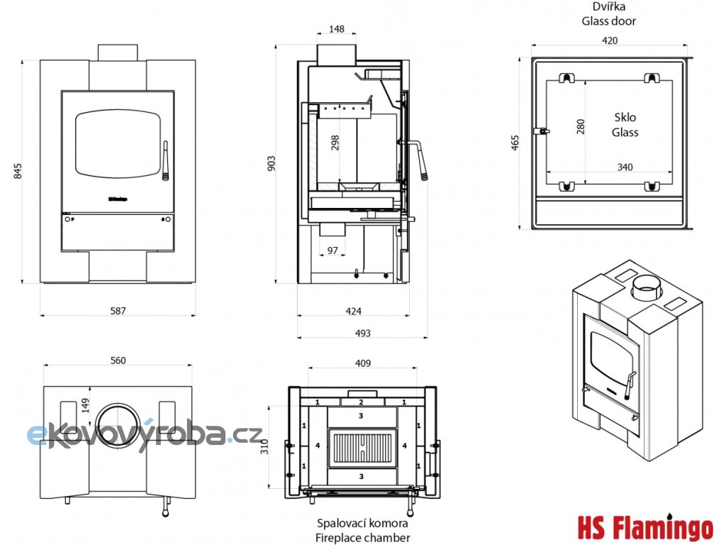 Krbová kamna HS Flamingo jsou ryze českým výrobkem. Je zde kladen velký důraz na použité materiály a především jejich sílu. Krbová kamna splňují nejpřísnější evropské normy, díky nimž jsou velmi žádaná v zahraničí. Jejich komora je vyrobená z 5mm ocelového plechu a pro dokonalejší spalování je vysázena pravým šamotem. Sekundární spalování, krásně čisté sklo a externí přívod vzduchu je u kamen HS Flamingo samozřejmostí.