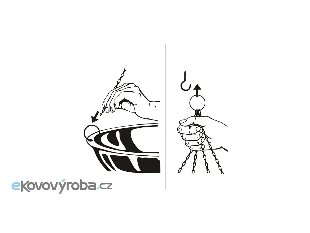 Ocelový řetěz k upevnění půlkulatých zrcadel. |