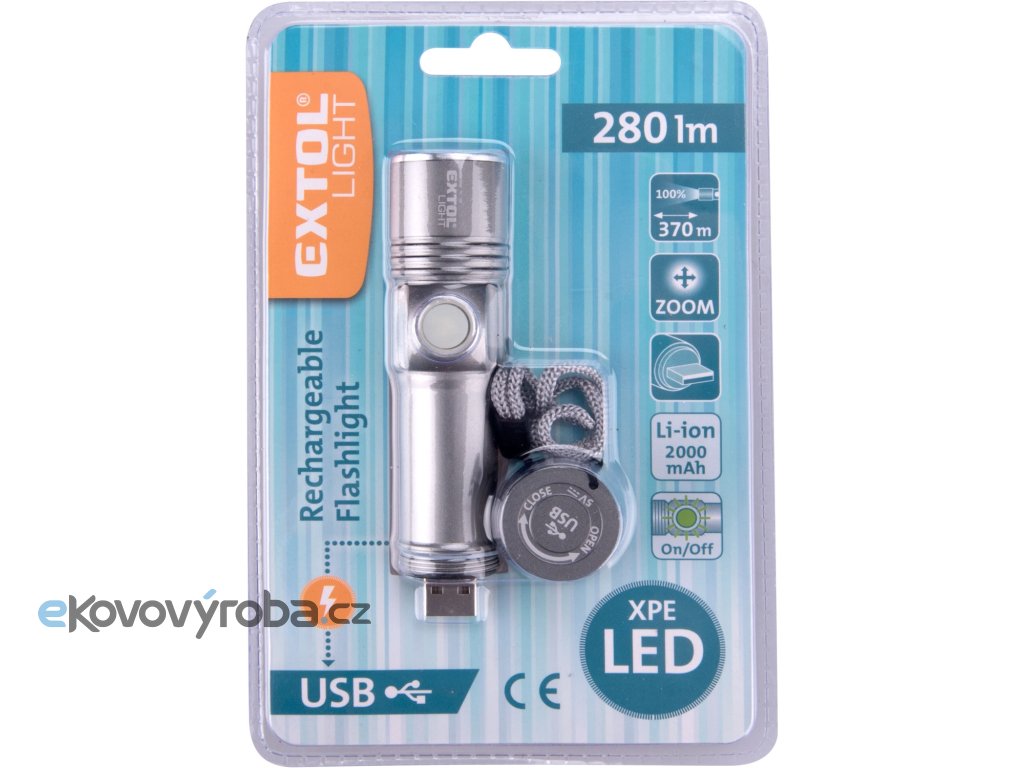 svítilna 280lm, zoom, USB nabíjení, XPE LED