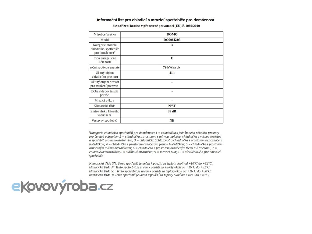Mini lednice - DOMO DO906K/03, Objem: 41 l *, Třída: E