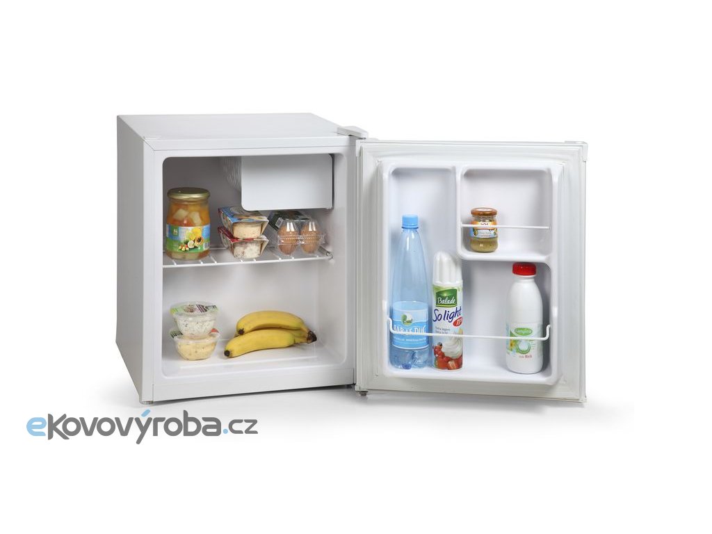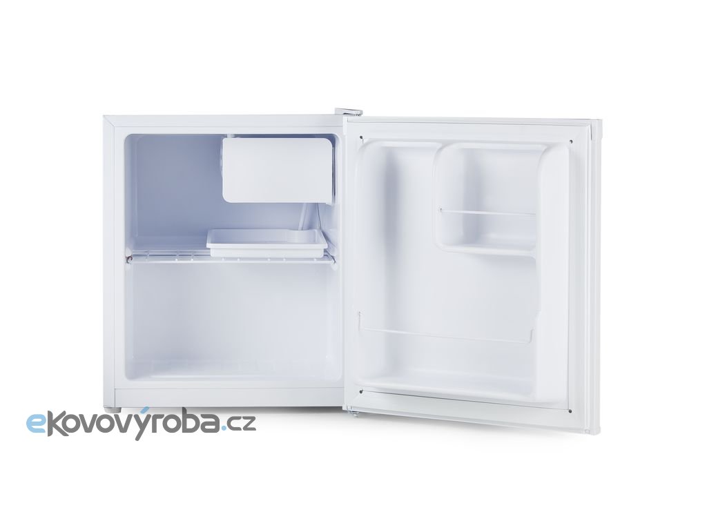 Volně stojící jednodvéřová mini lednice s mrazící přihrádkou o celkovém vnitřním objemu 41 l. Úsporná energetická třída E a rozměry vhodné pro použití v kancelářích, studentských pokojích, garsonkách i na chatě, nebo v pokoji pro hosty. Otevírání dvířek lze stranově přehodit.