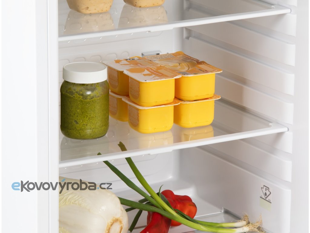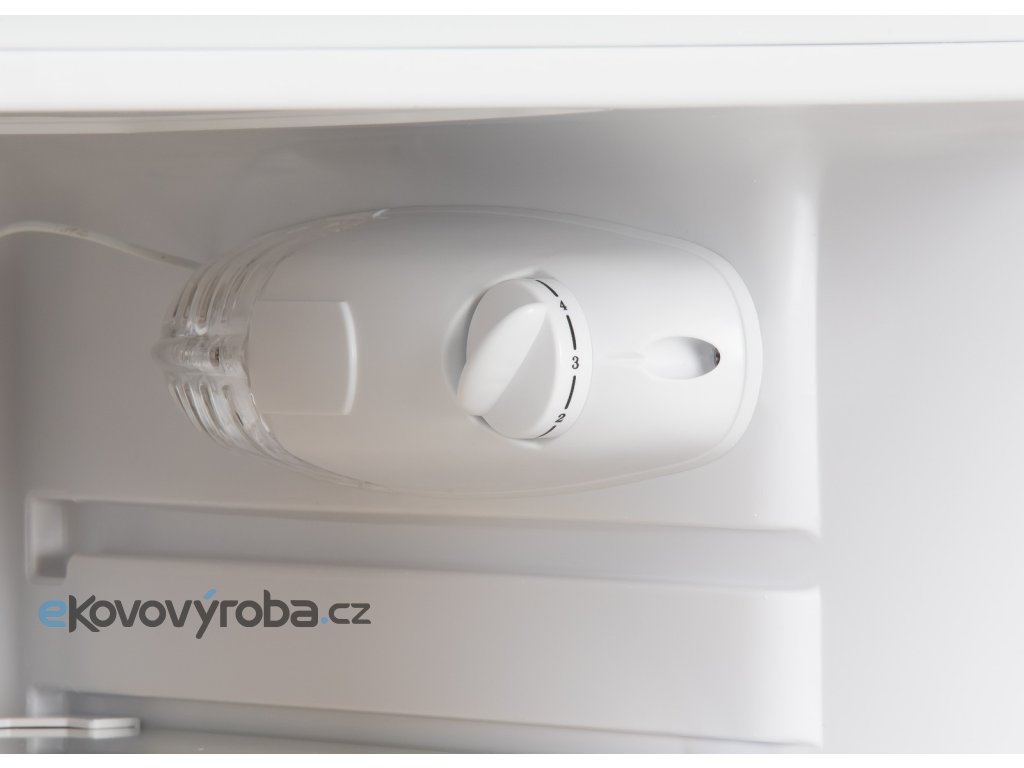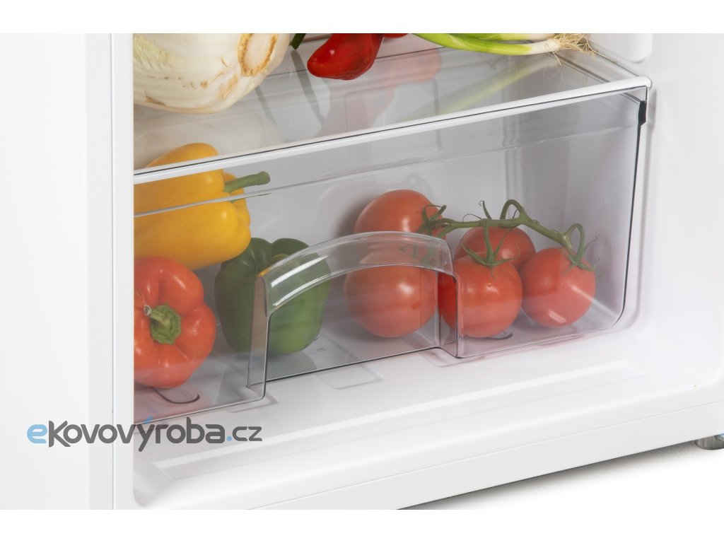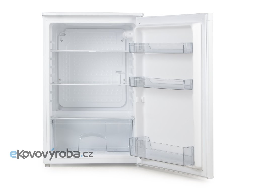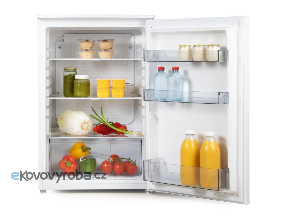 Volně stojící jednodvéřová monoklimatická lednice bez mrazáku o objemu 126 l. Úsporná energetická třída D. Praktická výška 84,5 cm umožňuje umístění i pod pracovní desku kuchyňské linky. Speciální horní víko lze díky svému tvarování a speciálnímu odolnému povrchu využít i na odkládání nádobí, nebo jiných věcí.