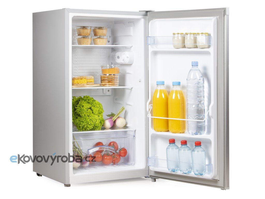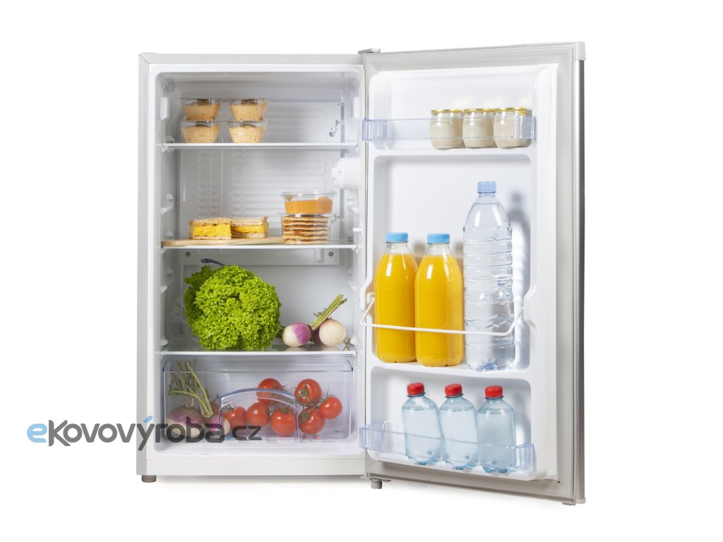 Praktická lednice kompaktní z venku a velká uvnitř. Vnitřní prostor je rozčleněný dvěma velkými policemi, které si můžete umístit do různých výšek dle potřeby. Lednice snadno pojme velké množství čerstvých potravin. Čerstvou zeleninu umístíte do zásuvky ve spodní části, láhve můžete umístit do držáků ve dveřích, stejně tak jako další drobné sklenice, vejce apod. Se svou výškou 85 cm a šířkou necelých 48 cm se lednice vejde prakticky kamkoliv a bude vhodnou výbavou i do studentských pokojů, nebo pokojů pro hosty. Navíc díky nízké hlučnosti o ní ani nebudete vědět.