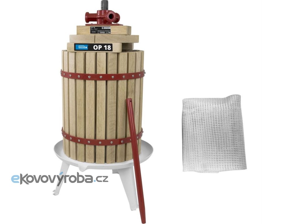 Ruční lis GÜDE, určený k domácí výrobě moštů nebo ovocných šťáv.