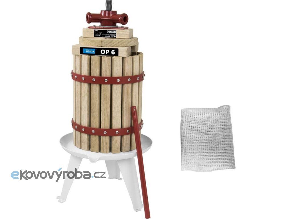 Ruční lis GÜDE, určený k domácí výrobě moštů nebo ovocných šťáv.