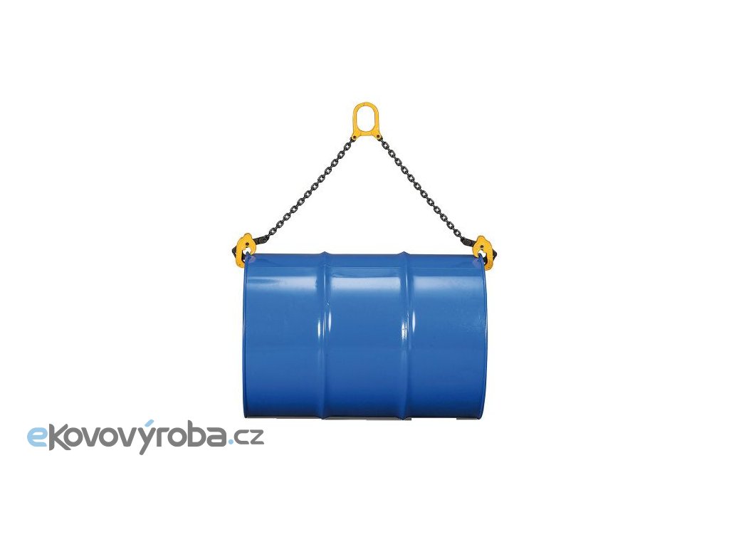 Vyrobeno z vysoce kvalitní oceli. Navrženo pro bezpečnou a jednoduchou manipulaci se sudy. Používá se pro manipulaci s kovovými sudy o objemu 210 l s lemem v horizontální i vertikální poloze. Vhodné pro situace, kdy by uvázání a manipulace se sudem jiným způsobem bylo zdlouhavé, obtížné nebo nebezpečné. Určeno pro zavěšení na jeřáb nebo kladkostroj s dostatečnou nosností. Vybaveno speciálními zubovými úchyty na koncích řetězu pro upevnění sudu za okraje. Používá se pro horizontální i vertikální uchycení sudu. Povrchová úprava provedena práškovou barvou. Rozměry - řetěz Pr. 6,3 mm x 516 mm - závěsné oko (vnitřní Š x D) 66 x 93 mm