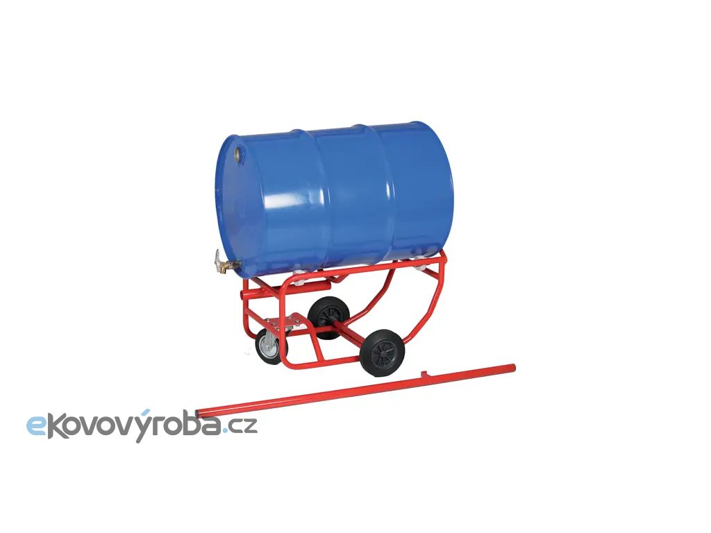 Vozík a stojan na sud s ojí slouží k přemisťování a manipulaci se sudem v/ve horizontálně poloze. Plná kola zajišťují, že vozík je schopen překonávat i drobné překážky a nerovnosti podlahy. |