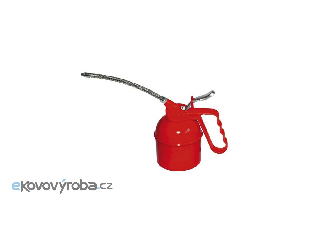 Nádoba je vyrobena z oceli a pumpička z mosaze. Rukojeť je vyrobena z plastu. Vhodné pro dávkování oleje.