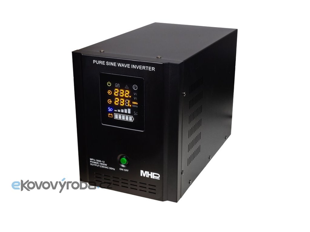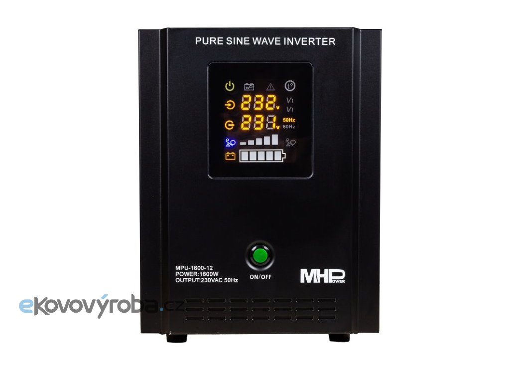 Napěťový měnič MHPower MPU-1600-12 12V/230V, 1600W, funkce UPS, čistý sinus