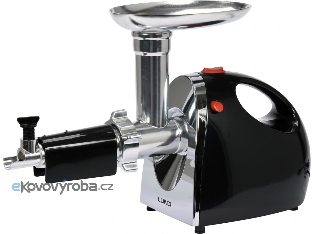 Multifunkční mlýnek na maso 5v1 od firmy LUND se špičkovým výkonem 1200 W a kapacitou 1,5 kg. Je vybaven vysoce kvalitními čepelemi z nerezové oceli, kovovou miskou a 3 sítky s různými průměry otvorů. Umožňuje mletí masa různých tlouštěk, sekanou zeleninu, vymačkanou šťávu, plní klobásy a připravu kebbe.