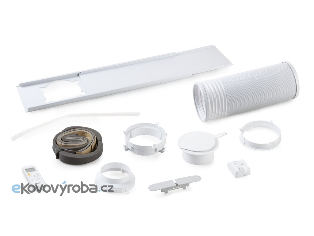 - Sada pro umístění výfuku vzduchu do otevřeného okna (plochý výfukový díl - délka 67,5 cm, pěnové těsnění, adaptér na hadici) - vhodné pro posuvná okna