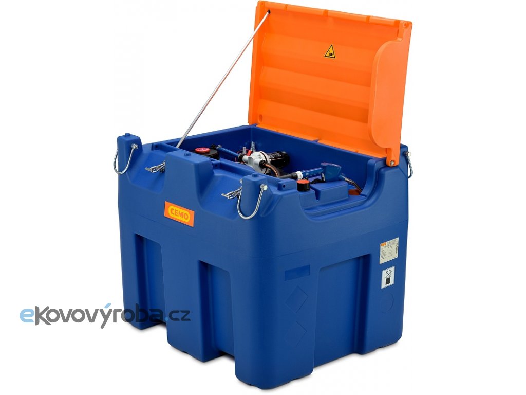 Mobilní plastová nádrž na AdBlue BLUE-Mobil EASY 980 s membránovým čerpadlem na AdBlue s napájením 230V a výkonem 30 l/min. Nádrž je vybavena automatickým navijákem výdejní hadice s hadicí délky 8 m zakončené automatickou výdejní pistolí, digitálním průtokoměrem K 24, ukazatelem zaplnění, plnícím otvorem se šroubovacím víkem s funkcí vyrovnání tlaku. Nádrž má připravené lůžko pro výdejní pistoli a je osazena čtyřmi ocelovými oky pro upevnění při přepravě nebo manipulaci jeřábem.