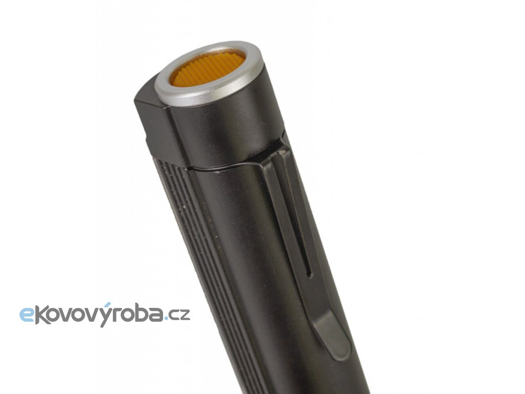 Na jednom konci baterky je oranžové tlačítko, kterým lze svítilnu zapnout. Při jemném promáčknutí můžete měnit funkce svítilny.