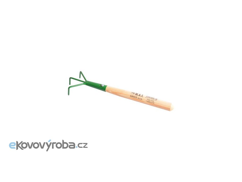 Lehký a odolný kovový drápek s dřevěnou násadou je vhodný pro běžné práce na zahrádce.