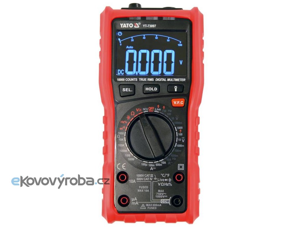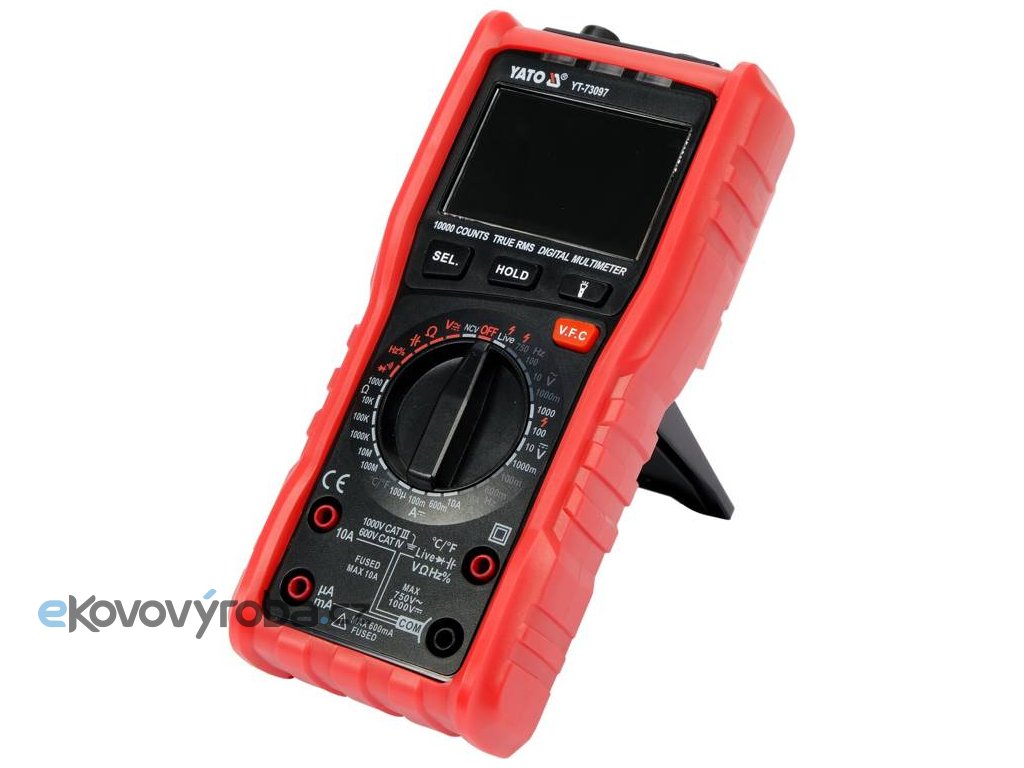 Multimetr YT-73097 TRUE RMS s unikátním designem s automatickým a manuálním rozsahem měření. Umožňuje provádět základní i pokročilá měření elektrických veličin. Velký multifunkční LCD displej umožňuje v některých režimech měření zobrazit dvě hodnoty najednou, např. napětí a frekvenci ze síťové zásuvky. Pouzdro je vybaveno červeným gumovým pouzdrem s vyhrazenými místy pro měřicí sondy, díky čemuž vám měřič snadno nevyklouzne z rukou a minimalizuje riziko poškození v případě pádu. Moderní design desky a speciální software znamenají nejen rychlost, přesnost a opakovatelnost odečtů, ale také zvýšenou úroveň bezpečnosti, o čemž svědčí i získání certifikace CAT IV až do 600V.