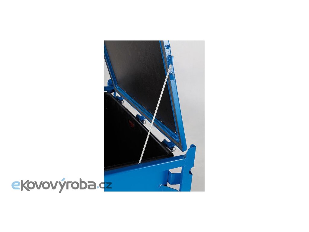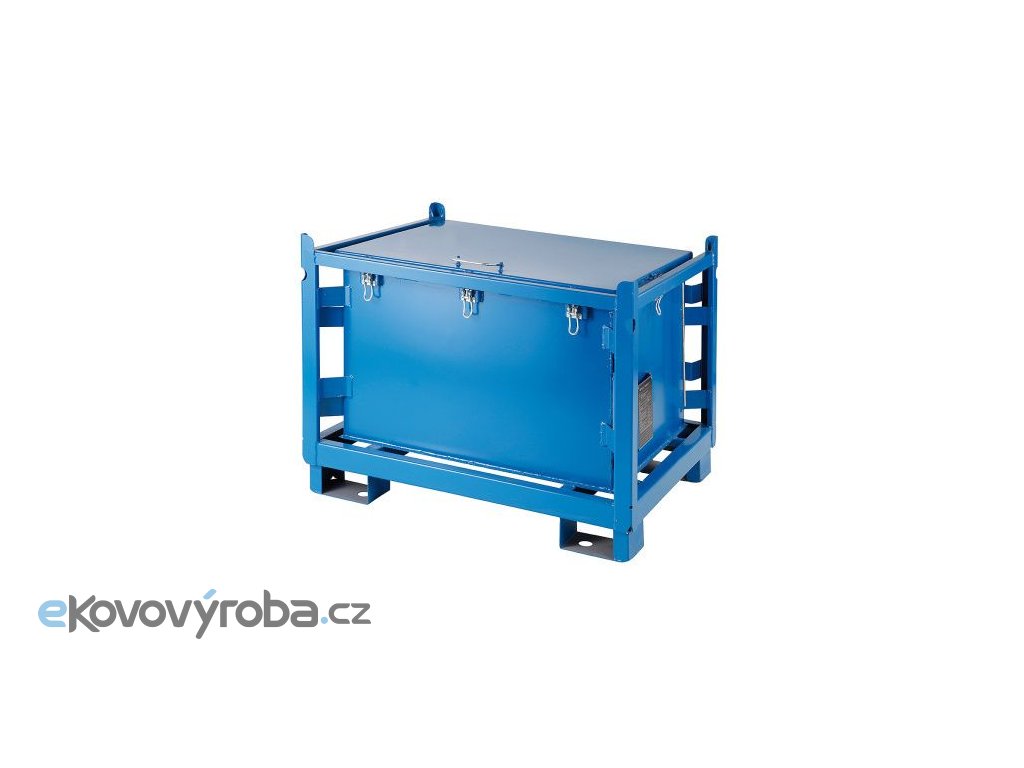 Ocelový kontejner na nebezpečné látky KS 500. Vyrobeno z ocelového plechu – konstrukce z nosníků a plechů. Povrchová úprava provedena lakováním. Kontejner je stohovatelný. Kontejner je vybaven zajištěním víka. Konstrukčně přizpůsobeno pro manipulaci s jeřábem a VZV technikou. Pogumovaný vnitřní prostor – vhodné pro skladování akumulátorů.