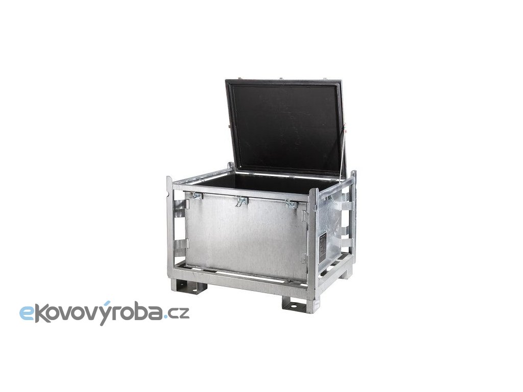 Ocelový kontejner na nebezpečné látky KS 500. Vyrobeno z ocelového plechu – konstrukce z nosníků a plechů. Povrchová úprava provedena zinkováním. Kontejner je stohovatelný. Kontejner je vybaven aretovaným víkem. Konstrukčně přizpůsobeno pro manipulaci s jeřábem a VZV technikou. Pogumovaný vnitřní prostor – vhodné pro skladování akumulátorů.