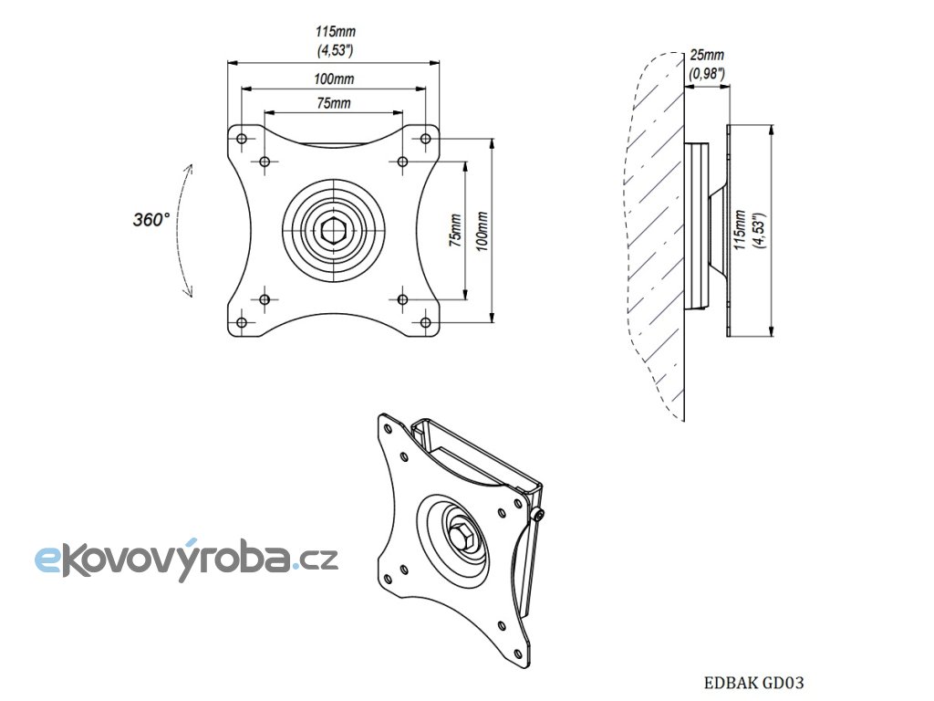 Profesionální nástěnný držák na Tv a monitory 10" - 32", vzdálenost od zdi 25 mm, rotace obrazovky +360° / -360°, VESA standardy 75x75 a 100x100, ocelová konstrukce, nosnost 20 kg, záruka 10 let.