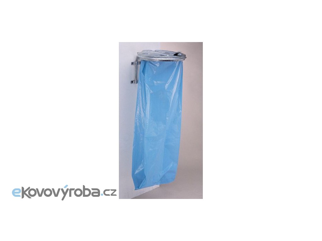 Ocelový nástěnný držák s víkem pro pytle o objemu 60 l. Vyrobeno z ocelového plechu jakostní třídy 11. Držák je konstruován jako obruč pro uchycení polyetylenového pytle, víko s madlem a držák. Držák je možné přišroubovat na stěnu, sloupek, apod. Povrchová úprava provedena žárovým zinkováním. Dodáváno pouze ve verzi pro objem 60 l.