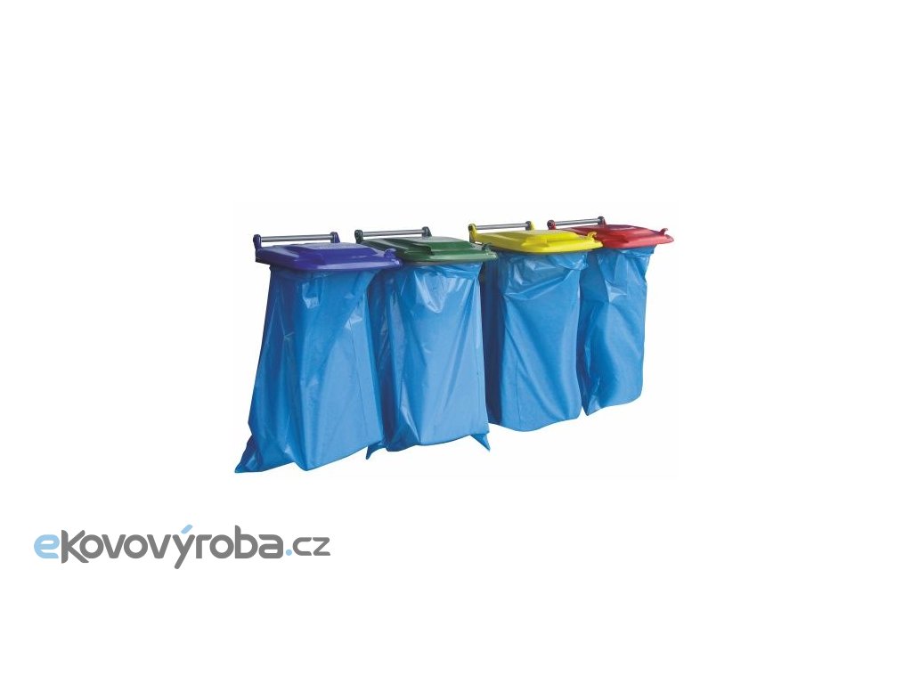 Nástěnný kovový držák pytle o objemu 120 l s plastovým víkem. Víko je vyrobeno z plastového materiálu. Konstrukce je tvořena kovovou trubkou. Vybaveno přidržovacím rámečkem na pytle. Povrchová úprava provedena práškovou barvou. Vhodné pro umístění v interiérech i exteriérech.