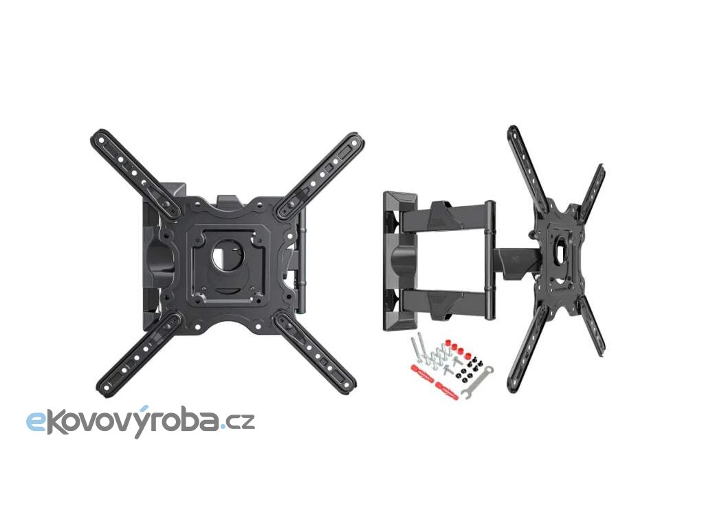 Nástěnný kvalitní držák na Tv 32" - 55", otočný do stran až +90° / -90°, naklápění Tv +5° / -8°, korekce roviny +4° / -4°, vzdálenost Tv od zdi 50-400 mm, VESA 100x100 až 400x400, úchytky na kabely, instalační materiál, nosnost 27,2 kg. Záruka 5 let.