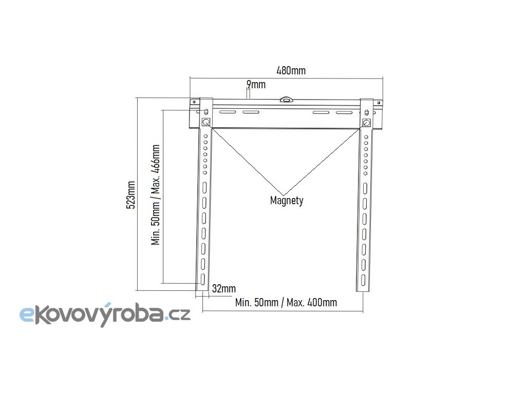 Držák na Tv 32" - 60" se vzdáleností od zdi pouhých 9 mm, ocelová konstrukce, instalační materiál, VESA standard 75x75 až 400x400, nosnost 55 kg