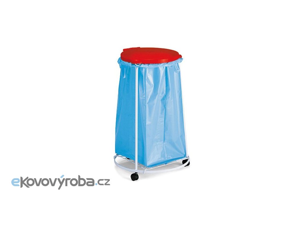 Konstrukce je vyrobena z kovového materiálu. Víko je vyrobeno z pružného plastu. Kovová konstrukce je opatřena práškovou barvou. Vybaveno plastovými kolečky o průměru 35 mm. Vybaveno roštem ve spodní části stojanu – zabraňuje protržení pytle. Barevné provedení se vztahuje na barvu víka.