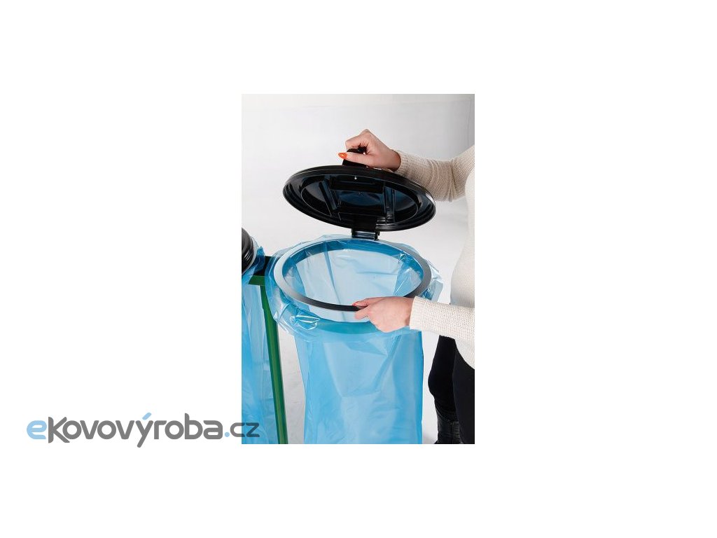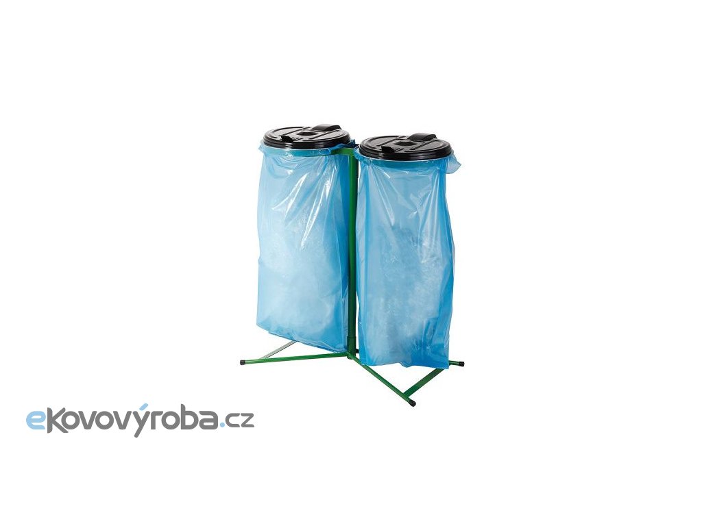 Stojan je vyroben z kovu a víko je vyrobeno z plastového materiálu. Určeno pro zavěšení dvou pytlů o objemu 120 l. Povrchová úprava stojanu je provedena nátěrem zeleným komaxitem. Vhodné pro sběr běžného odpadu i tříděného odpadu. Vhodné pro vnitřní použití.