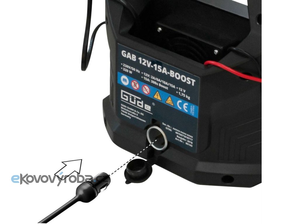 Automatická nabíječka baterií GÜDE, určená k nabíjení 12 V baterií vozidel. Po ukončení procesu nabíjení baterie se zařízení automaticky přepne do režimu udržovacího nabíjení. Nabíječka může zůstat trvale připojena, aby udržovala plný stav nabití baterie. Použití funkce BOOST, umožňuje krátkodobé (300 s) nabíjení akumulátorů proudem 15 A, například pro zajištění startování.