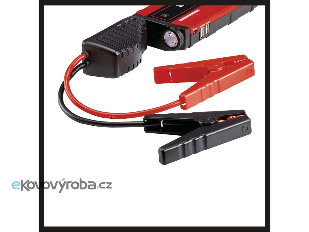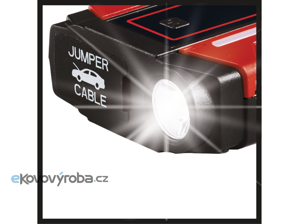 Einhell CE-JS 8/1 Jump-Start – Power Bank je kompaktní a praktická pomoc při nastartování a powerbanka, což z tohoto přístroje dělá ideálního společníka v každém vozidle a na cestách. Pomocí pouze jednoho zařízení lze přemostit prázdné autobaterie, stejně jako rychle a snadno dobít mobilní spotřebiče, jako je mobilní telefon, tablet, fotoaparát atd. Výkonná lithium-polymerová baterie s kapacitou 3 x 2500 mAh vždy dokáže zajistit dostatečný výkon. Aktuální stav nabití lze navíc rychle zobrazit prostřednictvím LED diod indikujících stav nabíjení. Další užitečnou funkci této malé powerbanky nabízí integrované pracovní LED světlo se stálým světlem, blikajícím stroboskopem a signálem SOS pro různé nouzové situace. Aby byla mobilní powerbanka schopna snadno nabít různé spotřebiče, jsou rovněž integrovány 5V/2A přípojka USB a přídavná přípojka pro rychlé nabíjení. Součástí dodávky je startovací kabel s plně izolovanými pólovými kleštěmi a ochranou proti přetížení sloužící k připojení k powerbance, adaptérový kabel USB, kabel pro rychlé nabíjení (nabíjecí kabel USB) pro nabití mobilní powerbanky i praktické ochranné a úložné pouzdro.