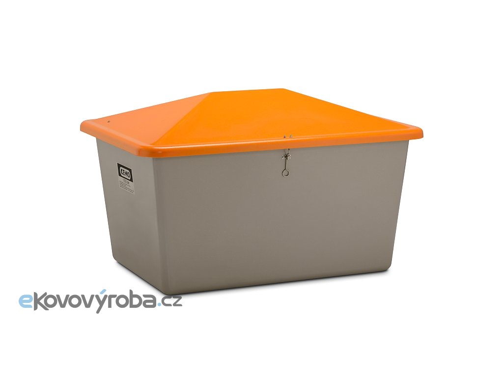 Zásobník 1.100 l, bez otvoru, tělo šedé, víko oranžové, rozměry: 163 x 121 x 101 cm