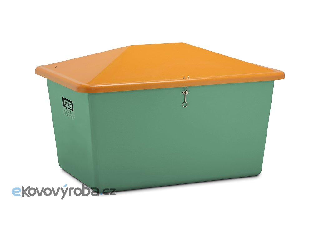 Zásobník 1.100 l, bez otvoru, tělo zelené, víko oranžové, rozměry: 163 x 121 x 101 cm