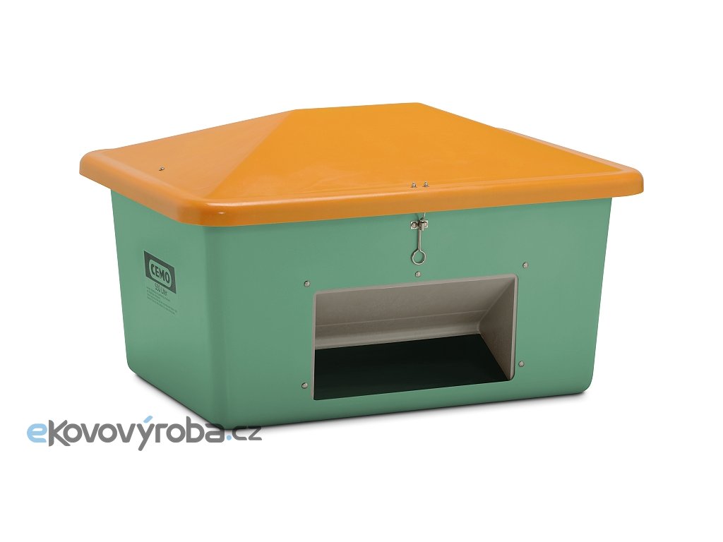 Zásobník 550 l, s otvorem, tělo zelené, víko oranžové, rozměry: 134 x 99 x 78 cm
