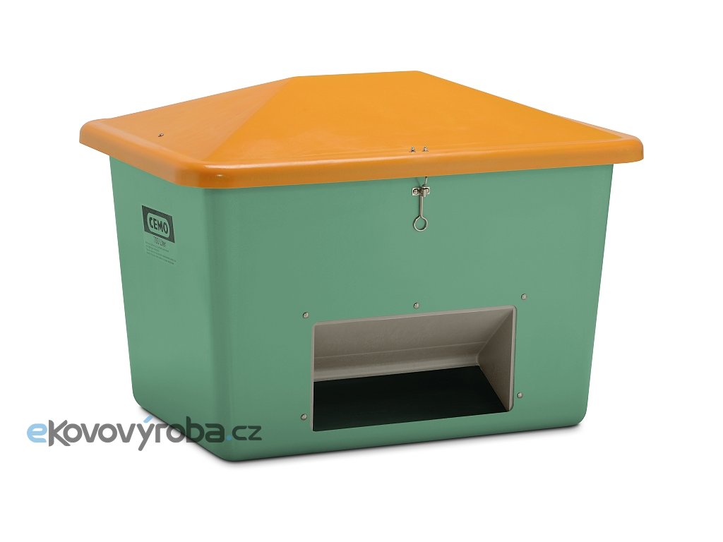Zásobník 700 l, s otvorem, tělo zelené, víko oranžové, rozměry: 134 x 99 x 96 cm