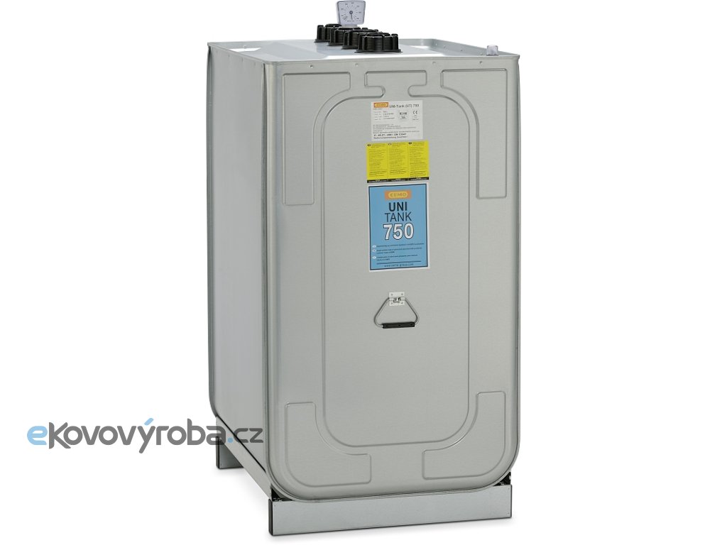 Dvouplášťová nádrž 750 l UNI pro stacionární použití. Nádrž má vnější ocelový plášť a vnitřní plastovou nádrž. Do nádrže vedou 4 šroubovací otvory z horní strany se závitem 2 a quot;. Do jednoho otvoru se instaluje přibalený plovákový ukazatel zaplnění, do ostatních se dá instalovat čerpadlo nebo jiné vedení. V nádrži je instalovaný plovákový ukazatel úniku. Rozměry: 98 x 77 x 142 cm