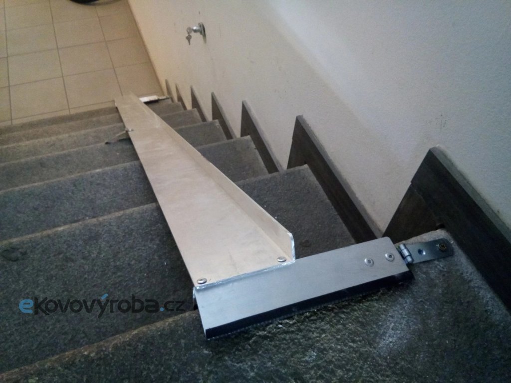 Protiskluzový systém a ochrana ostrých hran. Uchycení na pevno, či sklopné na panty s magnetickým uchycením pokud to prostor dovoluje. Tato nájezdová rampa je ideálním řešením pro místa, kde je potřeba překonat schody bez trvalých stavebních úprav. Konstrukce z lehkého a odolného kovu zajišťuje vysokou stabilitu při použití a zároveň pohodlné přenášení. Protiskluzový povrch přispívá k bezpečnému nájezdu, zatímco boční ohraničení pomáhá udržet kola ve správné stopě. Rampa je vhodná pro kola a koloběžky. Díky jednoduchému upevnění a skladnosti je ideální pro domácnosti, provozovny i veřejné budovy.
